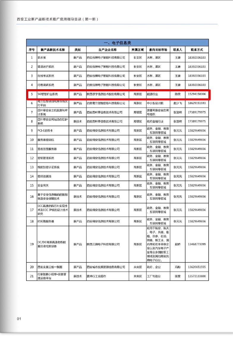 由西安市工業(yè)和信息化局組織編印的2021年《西安工業(yè)新產(chǎn)品新技術(shù)推廣應(yīng)用指導(dǎo)目錄(第一期)》于近日發(fā)布,陜西思宇信息技術(shù)股份有限公司自主研發(fā)的5G智慧礦山系統(tǒng)成功錄選。